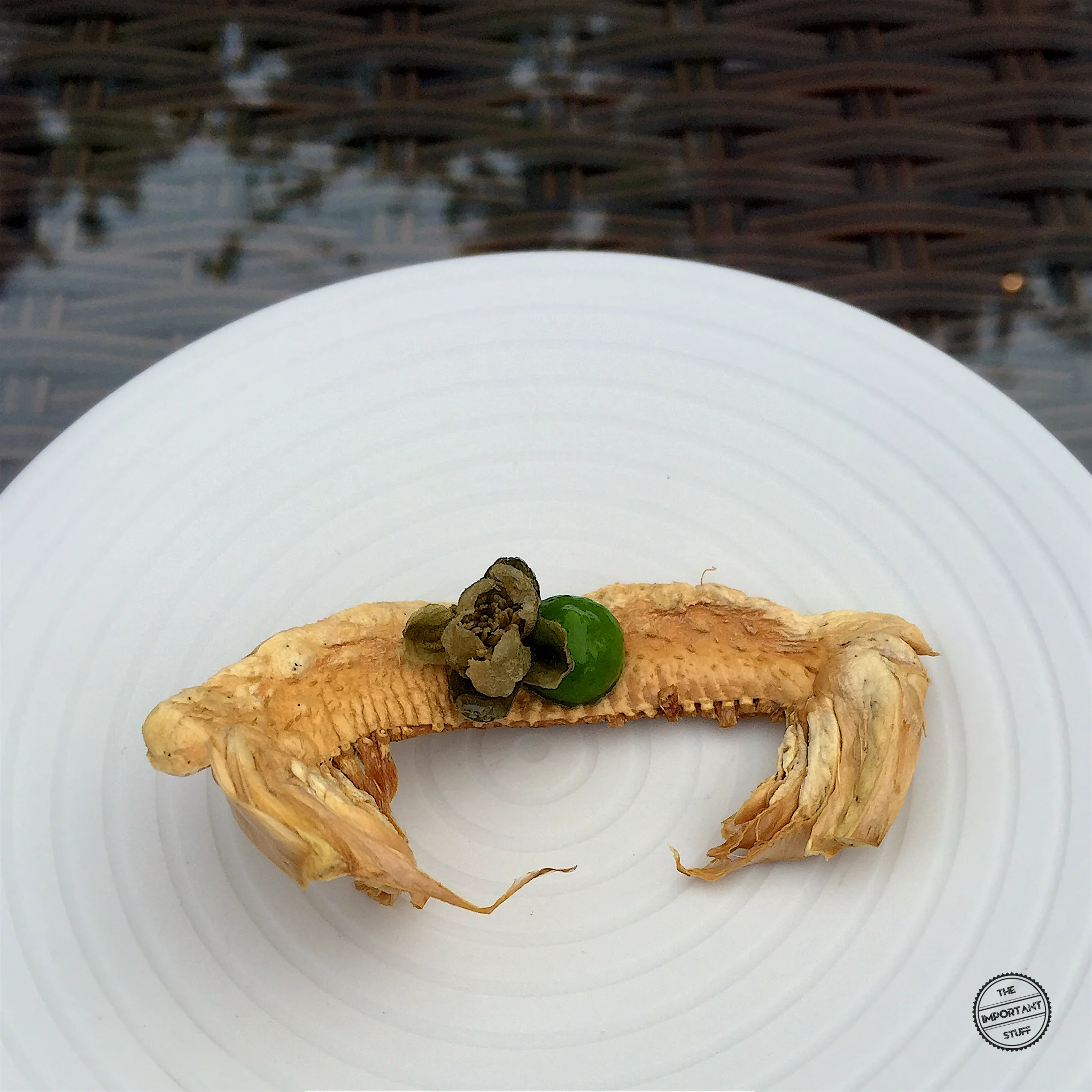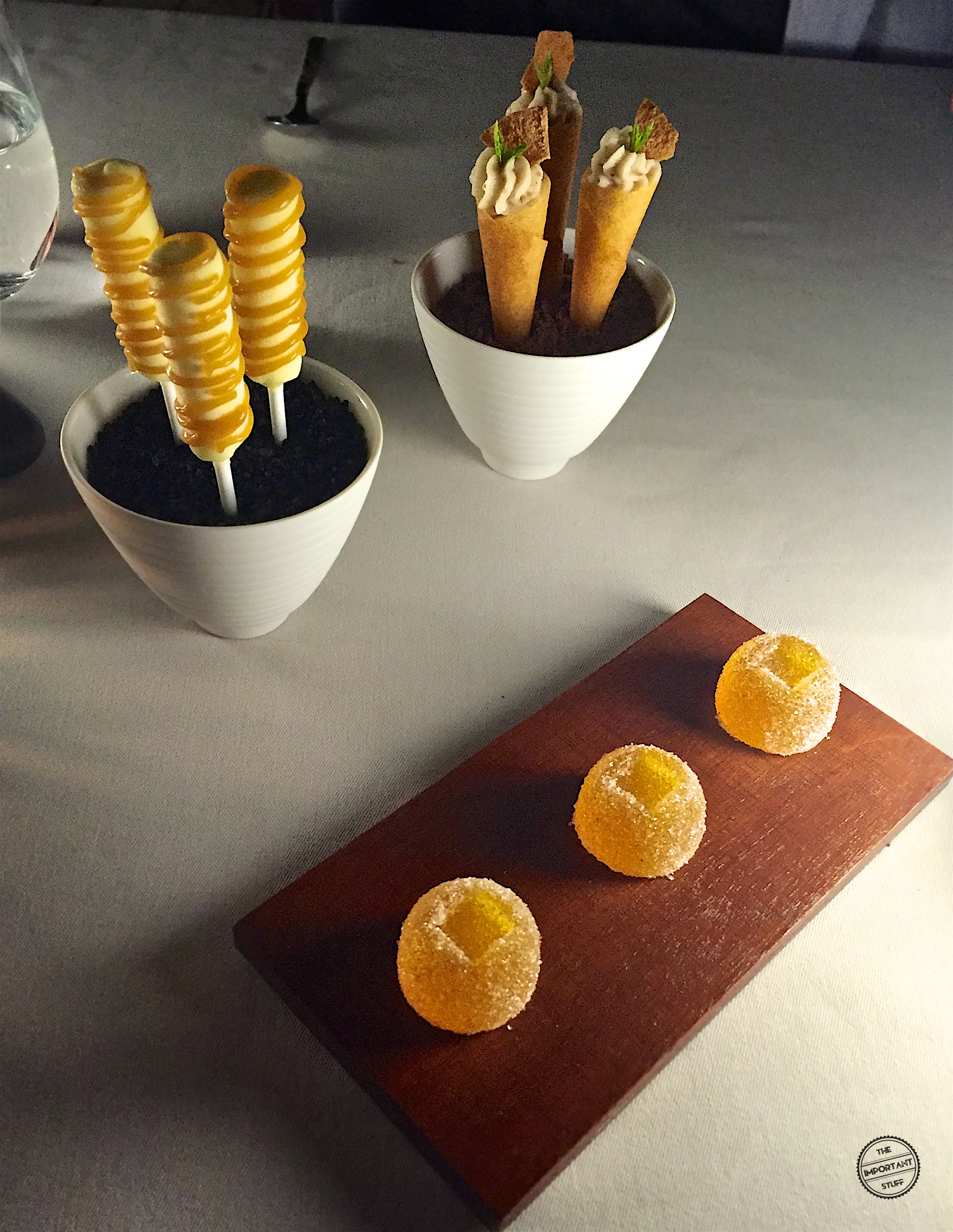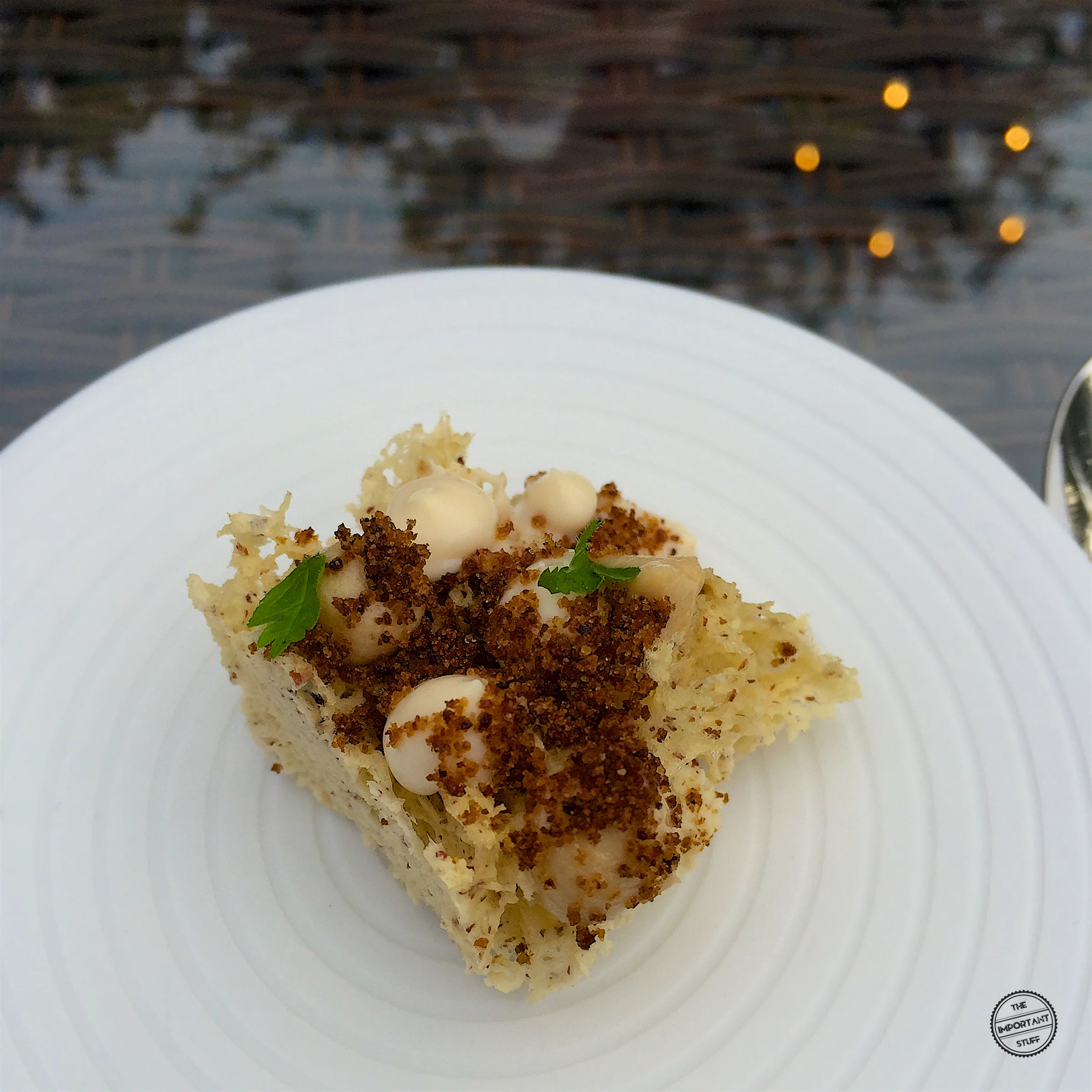 Eine luxuriöse Verbindung vom Meer und Land setzt die Knabbereien fort. Die maritime Süsse des Kaisergranats wird durch die Trüffeln ideal ergänzt und mit einem kleinen, knusprigen Knoblauchchip schön abgerundet. Ein tolle Petitesse.