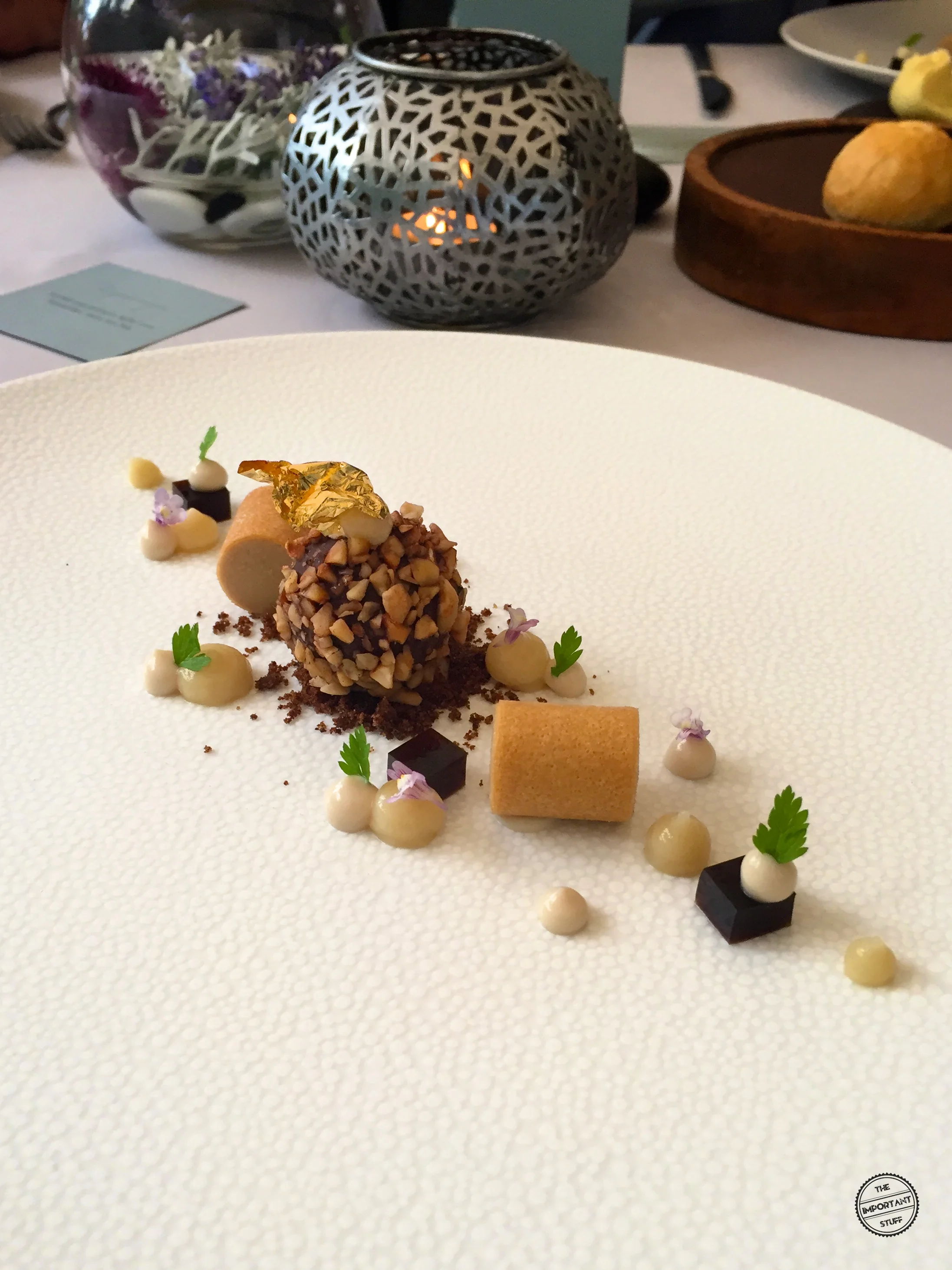 Haselnusssponge, Kaffee, Gänseleberparfait, Tabakcrème