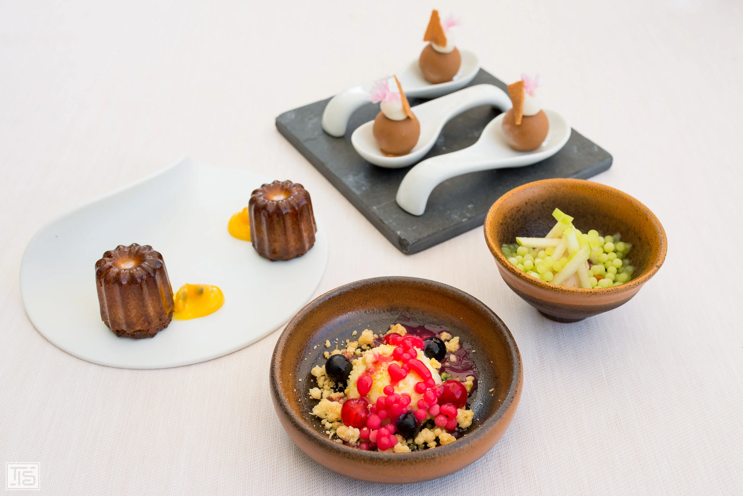 Das umfassende Menü endet mit einigen hervorragenden Petits Fours. Obwohl die Hitze und der Wein sowie die schiere Menge an Essen durchaus ihre Spuren hinterlassen haben, bleibt von diesen Petitessen kein Krümel übrig. Das soll was heissen.