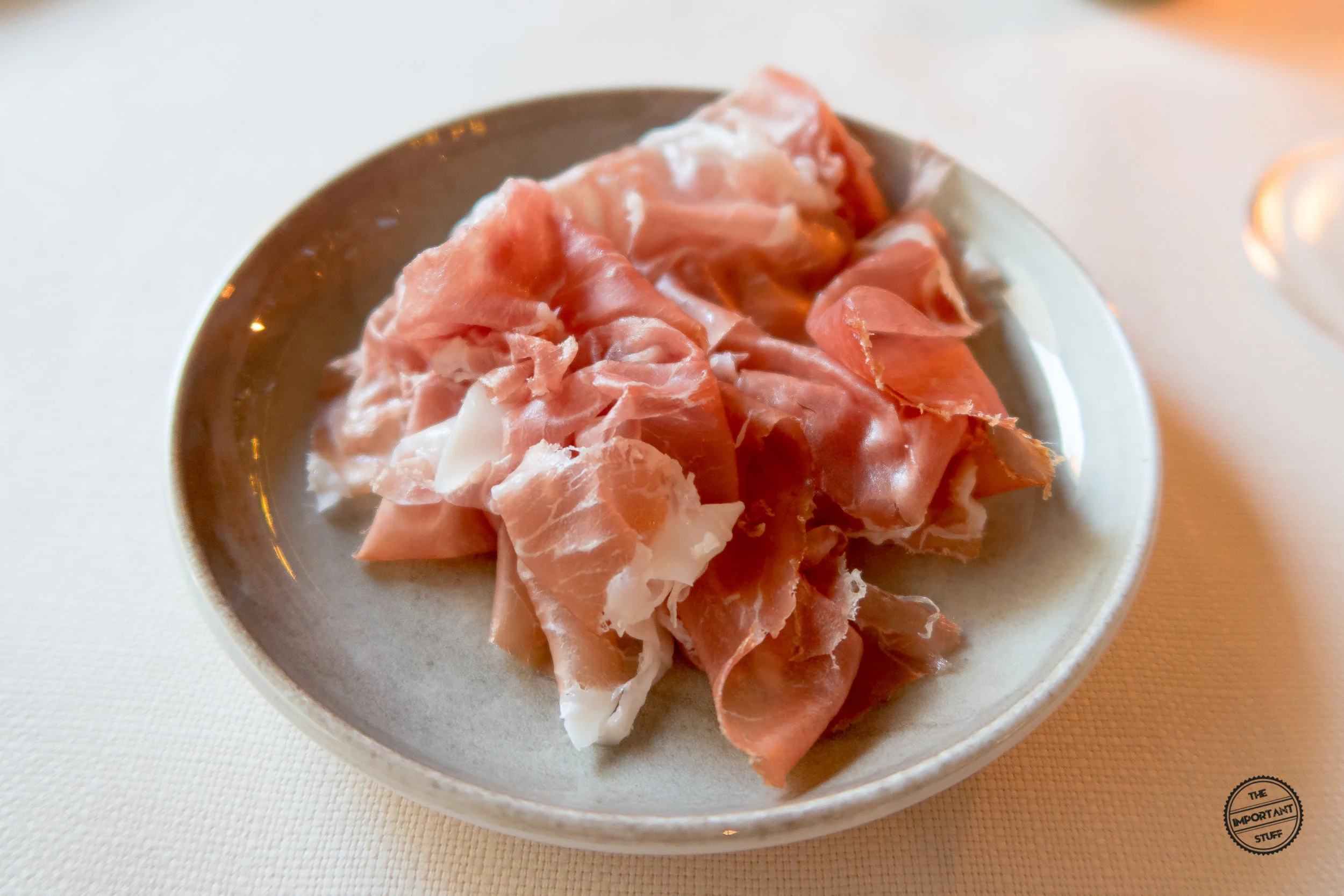 Den Abschluss der Snacks macht ein kleiner Berg frisch geschnittener Parmaschinken. Damit kann man natürlich wenig falsch machen. Ein grossartiges Produkt.