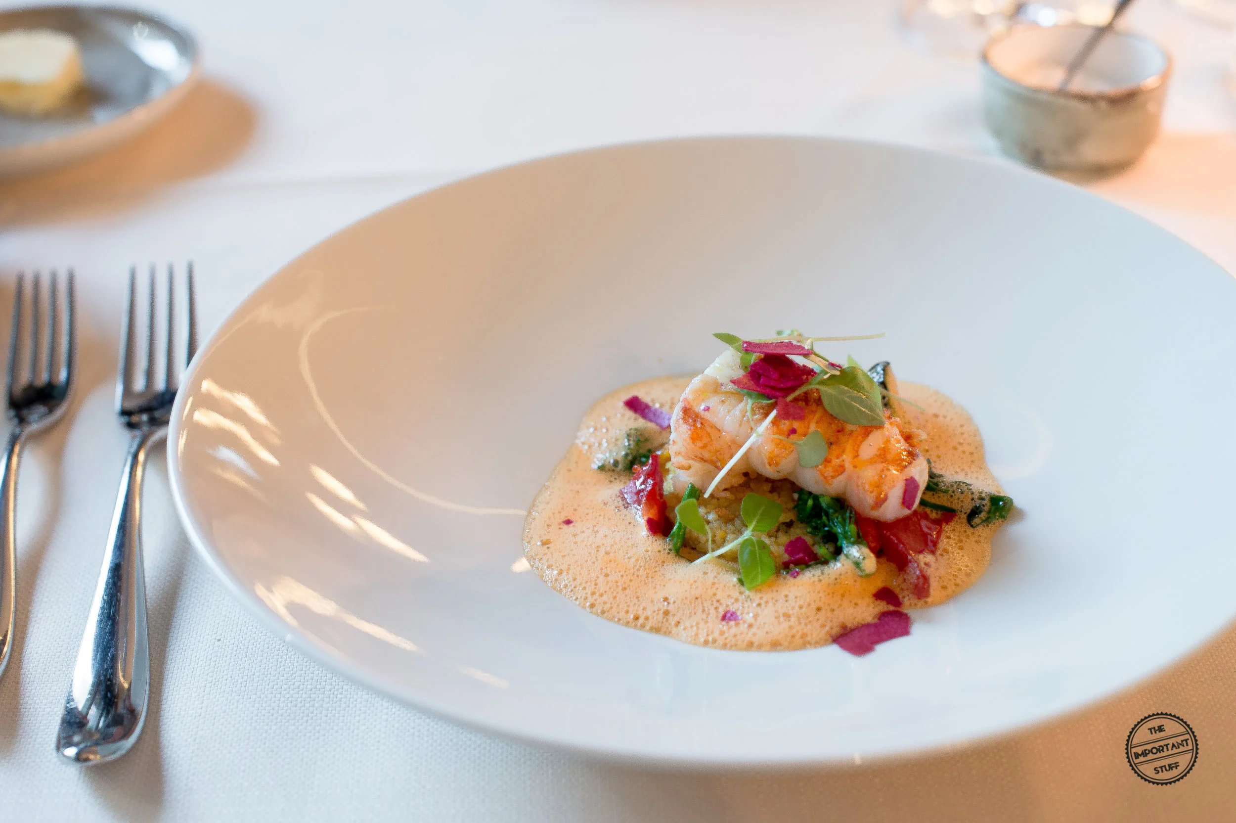Vom Land geht's Richtung Meer mit dem Steinfelsen-Hummer aus Tristan da Cunha vom Grill, Rauch-Peperonicreme, Artischocke, Catalogna und Chips. Der Hummer aus dem Südatlantik erfreut sich momentan grosser Beliebtheit. Warum, kann ich geschmacklich nur bedingt nachvollziehen. Treue Leser werden wissen, dass mich ein Hummer selten begeistert. Doch in diesem Fall muss er das glücklicherweise auch nicht. Denn der Star dieses Tellers liegt unter dem Edelkrebs: das Couscous. Diese simple nordafrikanische Griesszubereitung ist einfach phänomenal! Toll abgeschmeckt, mit ganz leichtem Biss und einer "orientalischen" Kräuternote, die ich nicht genauer definieren kann. In Kombination mit der Peperonicreme und dem Gemüse ein wahrer Hochgenuss. Dafür lasse ich jeden Hummer links liegen.