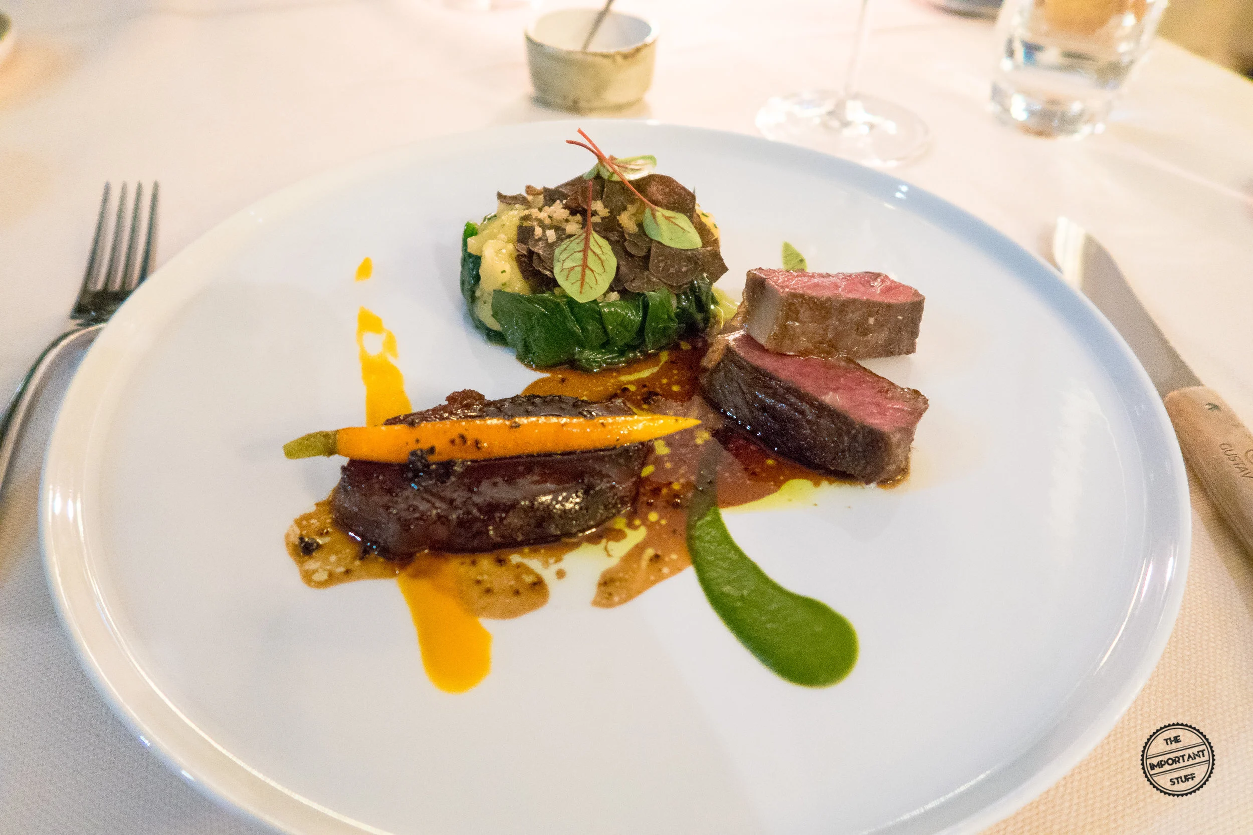 Den Hauptgang bestreitet die momentan schwer angesagte alte italienische Kuh mit Gemüse und Trüffeln. Das Fleisch ist fachmännisch gebraten, die Beilagen sind mit der gegebenen Sorgfalt behandelt worden, die Sauce ist von klassischer Provenienz. Alles in allem ein schmackhafter Hauptgang, der keinen Innovationspreis gewinnt, sondern ganz einfach gut schmeckt und von den tadellosen Produkten lebt, die zum Einsatz kommen.