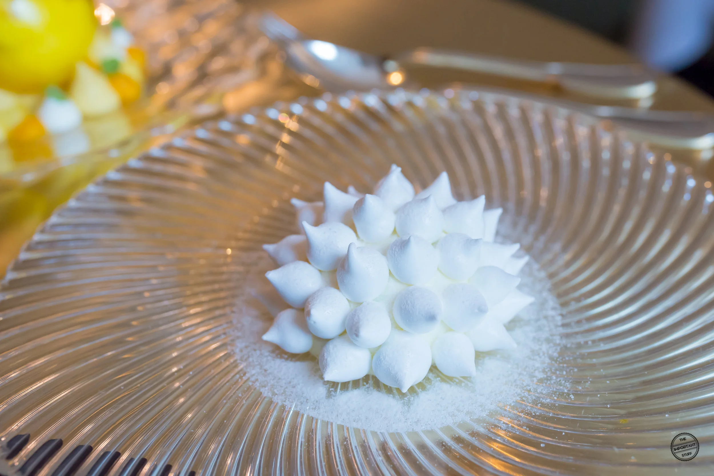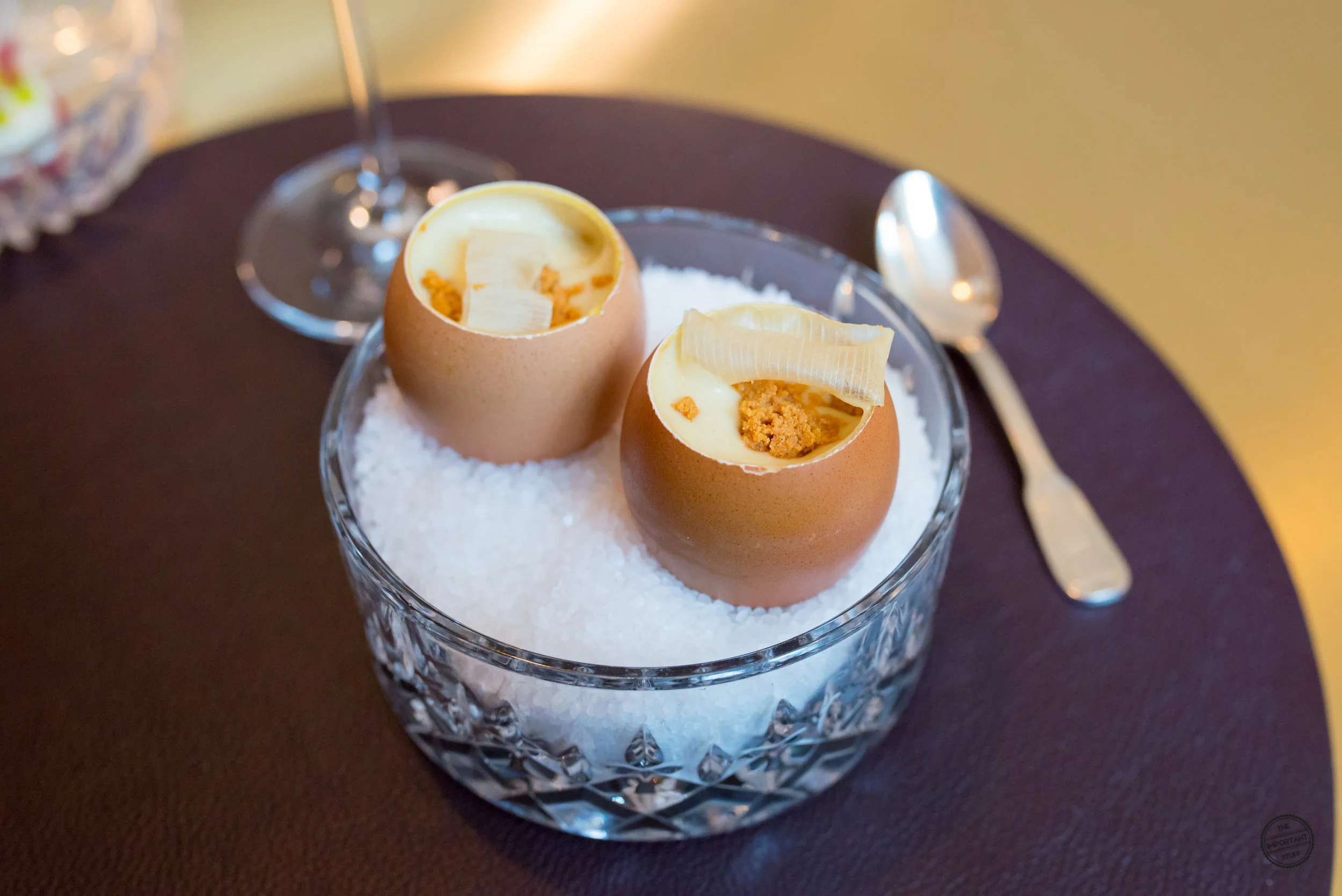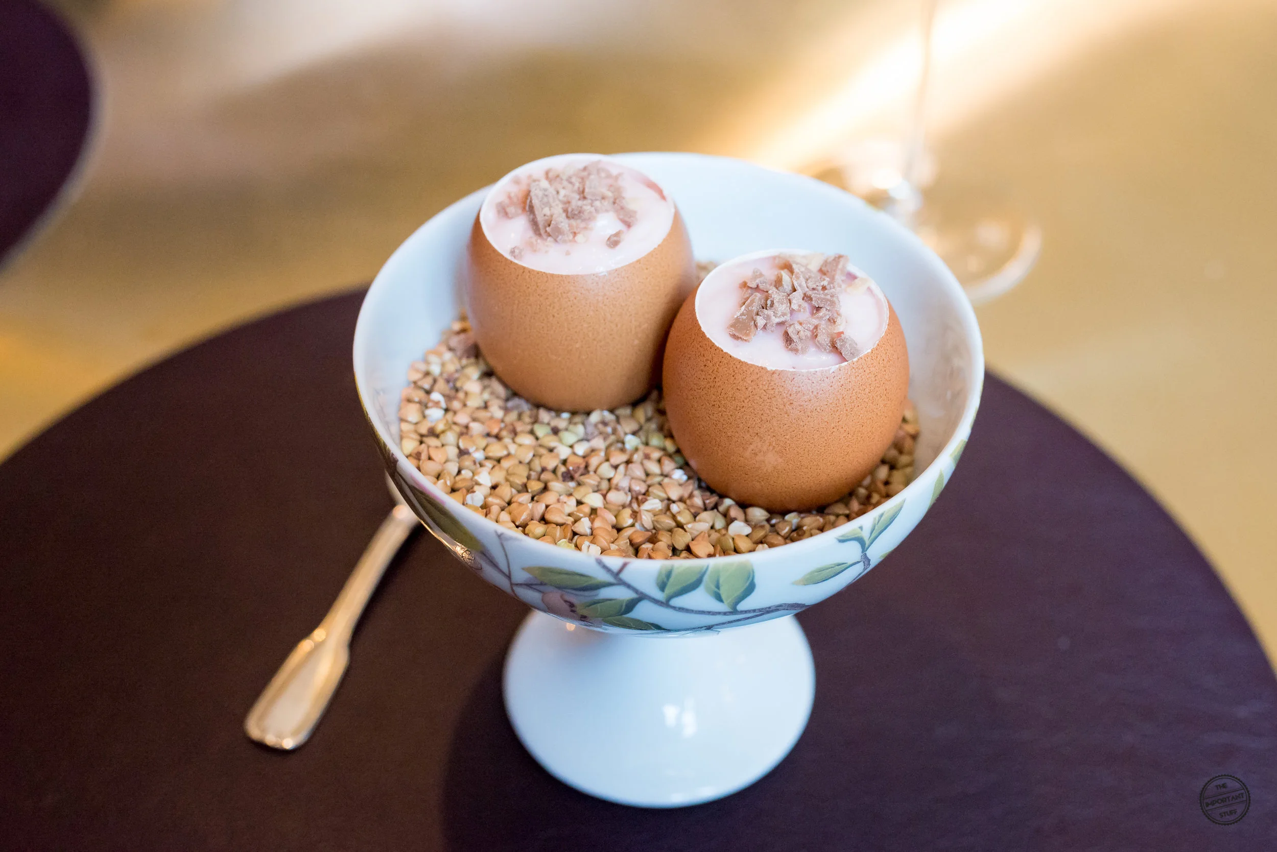 Das Ei Royal hat bei den Desserts seinen zweiten Auftritt, dieses mal gefüllt mit Brioche und Quitte. Lustig, wie sich das Luxuriöse auch in der süssen Variante widerspiegelt (durch die Brioche), obwohl das Geschmacksbild natürlich ein gänzlich anderes ist. Steht dem Original in nichts nach.