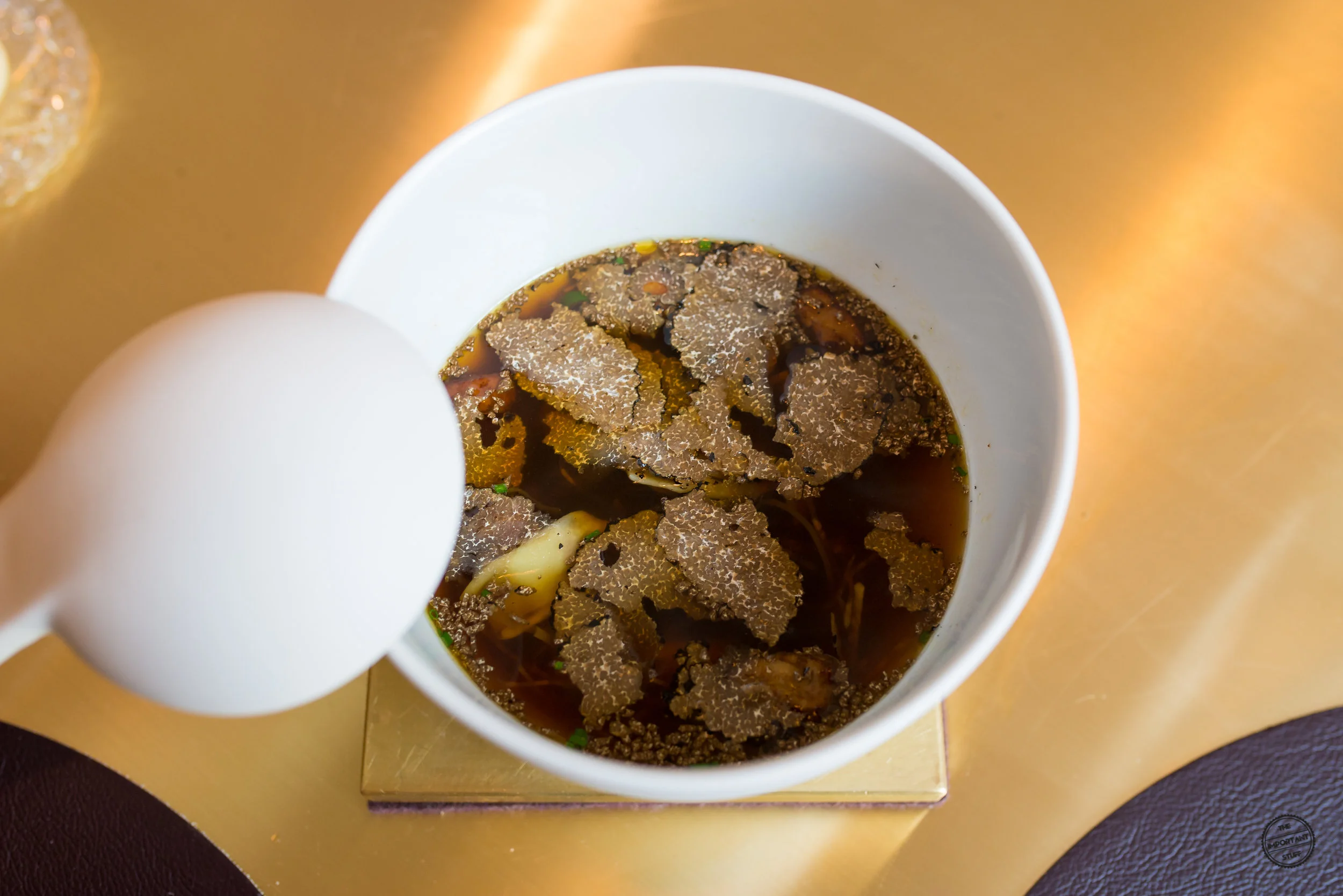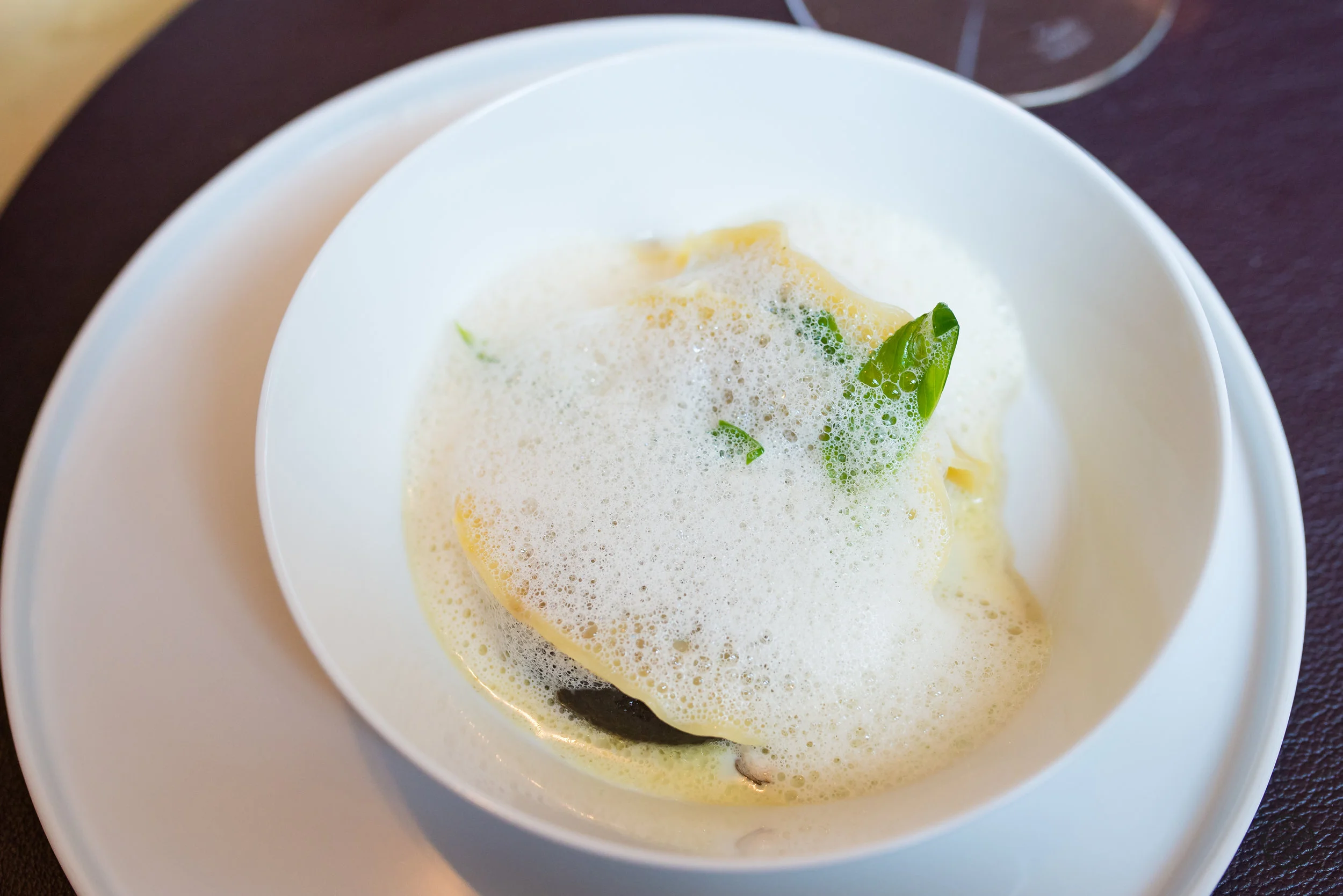 Als zusätzlichen Zwischengang wird eine Hühnersuppe aufgetragen, die es in sich hat. Denn im Igniv hat eine Suppe natürlich so gar nichts mit der ollen Brühe gemeinsam, die an kranken Tagen wohltuende Linderung verschafft und die Lebensgeister etwas aufweckt. Germann kocht eine glasklare, intensive und hochelegante Bouillon, die für sich genommen schon absolut umwerfend ist. Diese wird mit zartem Geflügel, Foie Gras, Tortellini sowie reichlich Trüffeln gepimpt. Lange um den heissen Brei reden bringt nichts: das ist ganz einfach eine der besten Suppen, die ich jemals gekostet habe und zeigt eindrücklich, wie stark Germann und seine Truppe auch handwerklich arbeiten. Nicht, dass es dafür noch eines weiteren Beweises bedurft hätte. Doch wer einen sucht, der findet ihn in diesem grandiosen Gang.