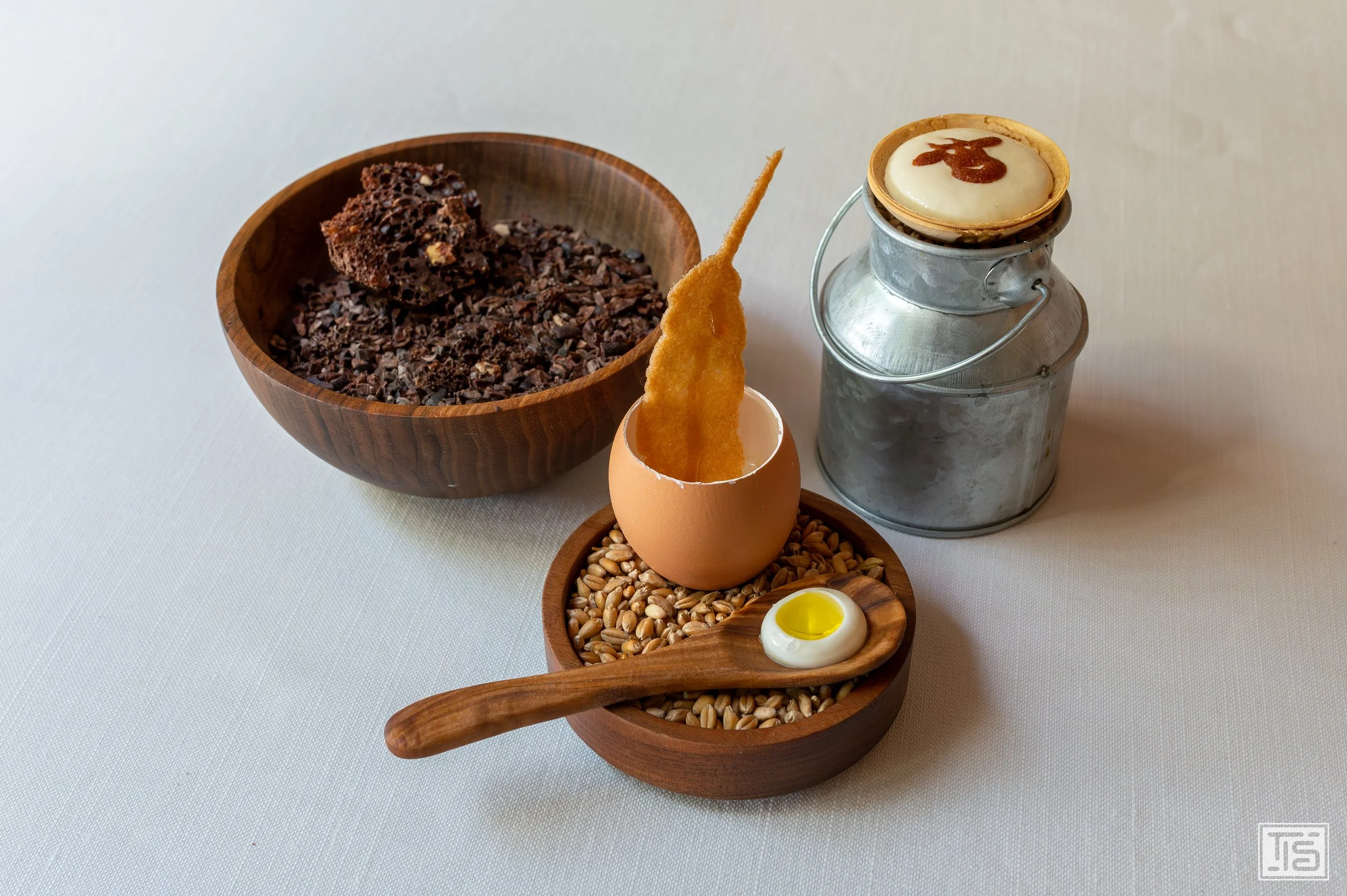 Ganz anders sieht das bei den Schnecken aus St. Rémy de Provence mit Knoblauch und Champignon Jus aus. Hier macht Glenn Viel alles richtig. Herrlich saftig und fleischig sind die Schnecken aus dem Nachbardorf - in dessen lokaler Nervenheilanstalt übrigens einst ein gewisser Vincent van Gogh Patient war, nachdem er sich sein linkes Ohr fast vollständig abgeschnitten hatte und dort einige seiner wichtigsten Werke, wie beispielsweise die Sternennacht, malte. Doch zurück zum Essen. Umspielt werden die Schnecken von einem federleichten Knoblauchschaum, der sie mit seiner erdig-würzigen Süsse hervorragend akzentuiert. Ebenso wie die kräftige Pilzjus, die für einen erdig-substantiellen Unterbau sorgt und die Brücke zu den ebenfalls leicht erdigen Schnecken schlägt. Das ist in seiner süffigen Simplizität einfach zum Weglöffeln gut.