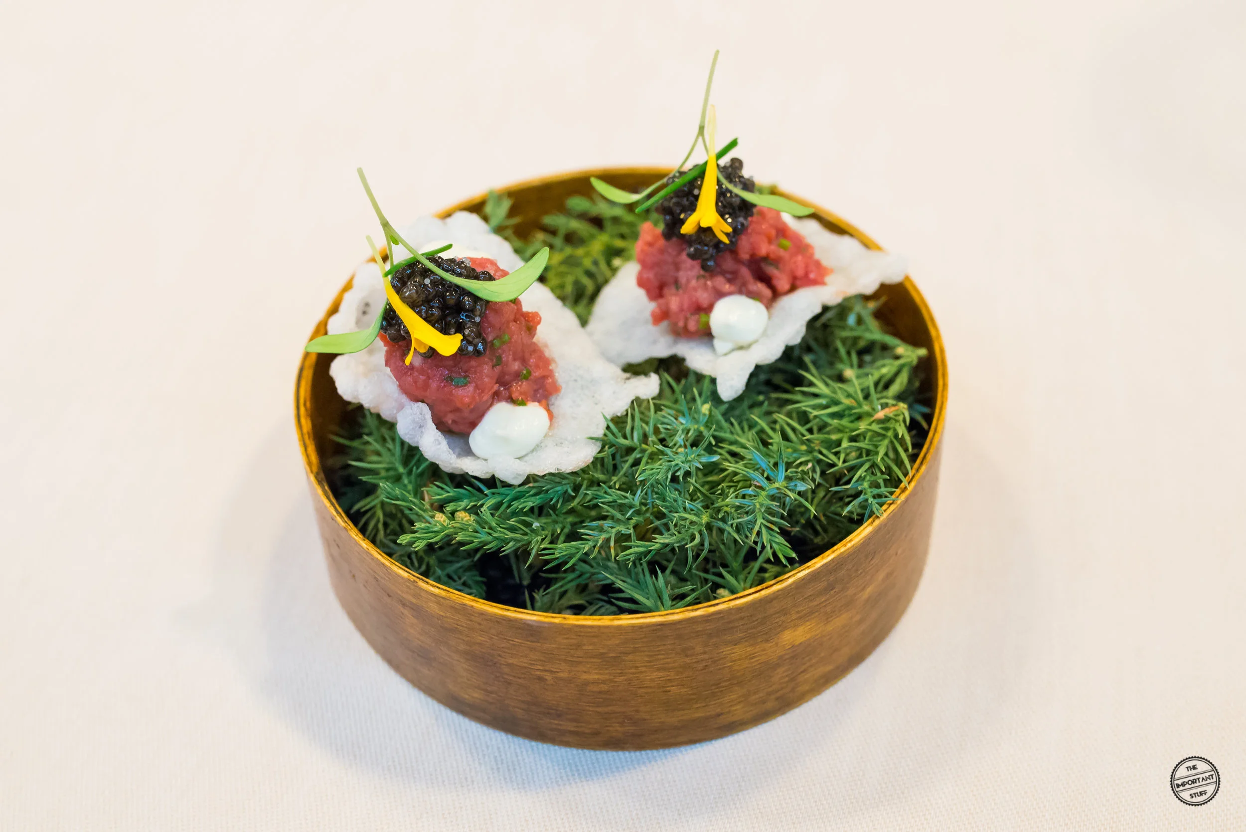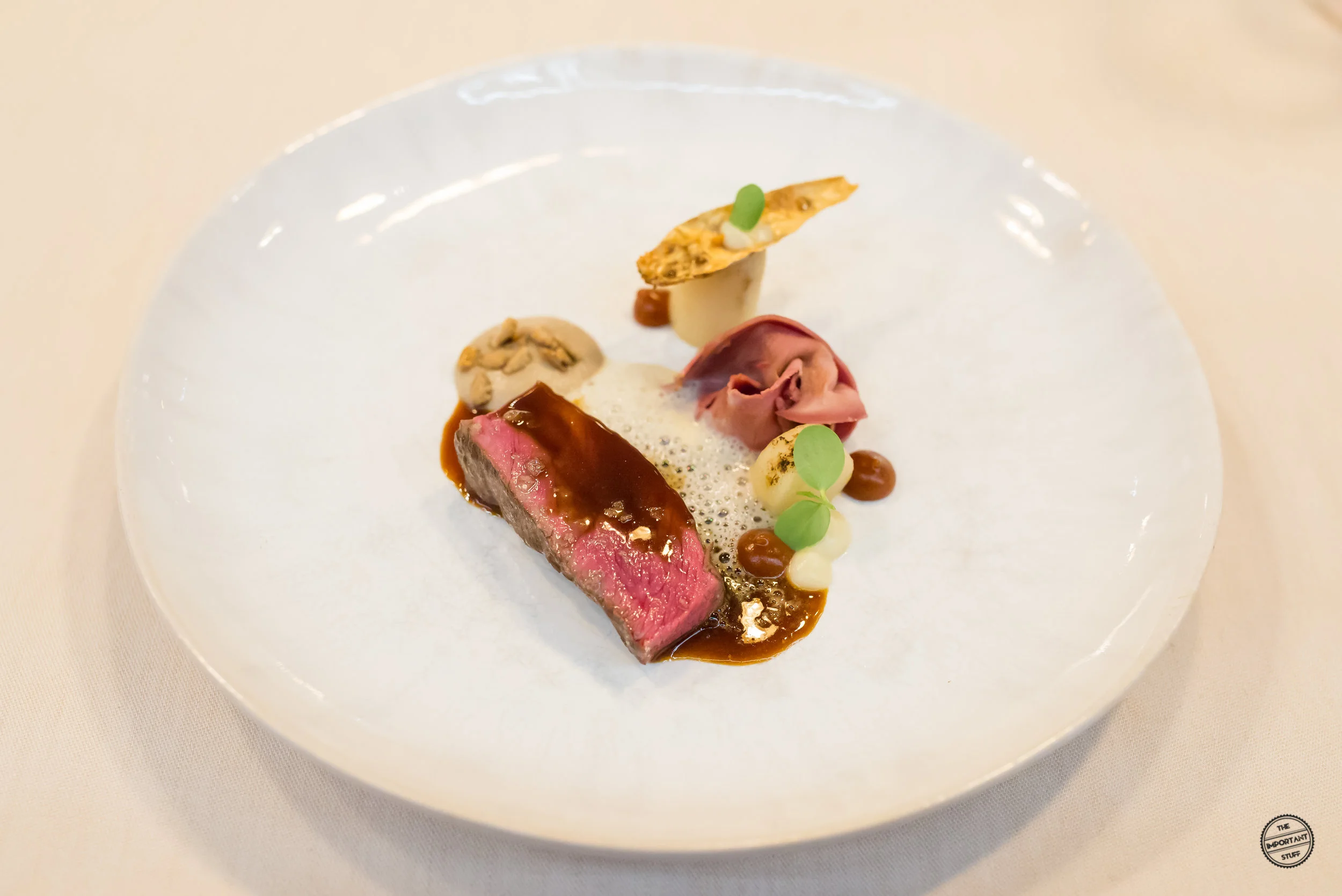 Beim Rindstartare mit Kaviar hingegen stimmt alles. Während das patentierte Zusammenspiel des hervorragenden Fleisches mit dem nicht minder schmackhaftem Schweizer Oona Kaviar erwartungsgemäss perfekt funktioniert, werden durch den Crunch des unterliegenden Tapiokachips und dem würzigen Meerettichtupfer gelungene Akzente gesetzt. Sehr schön.