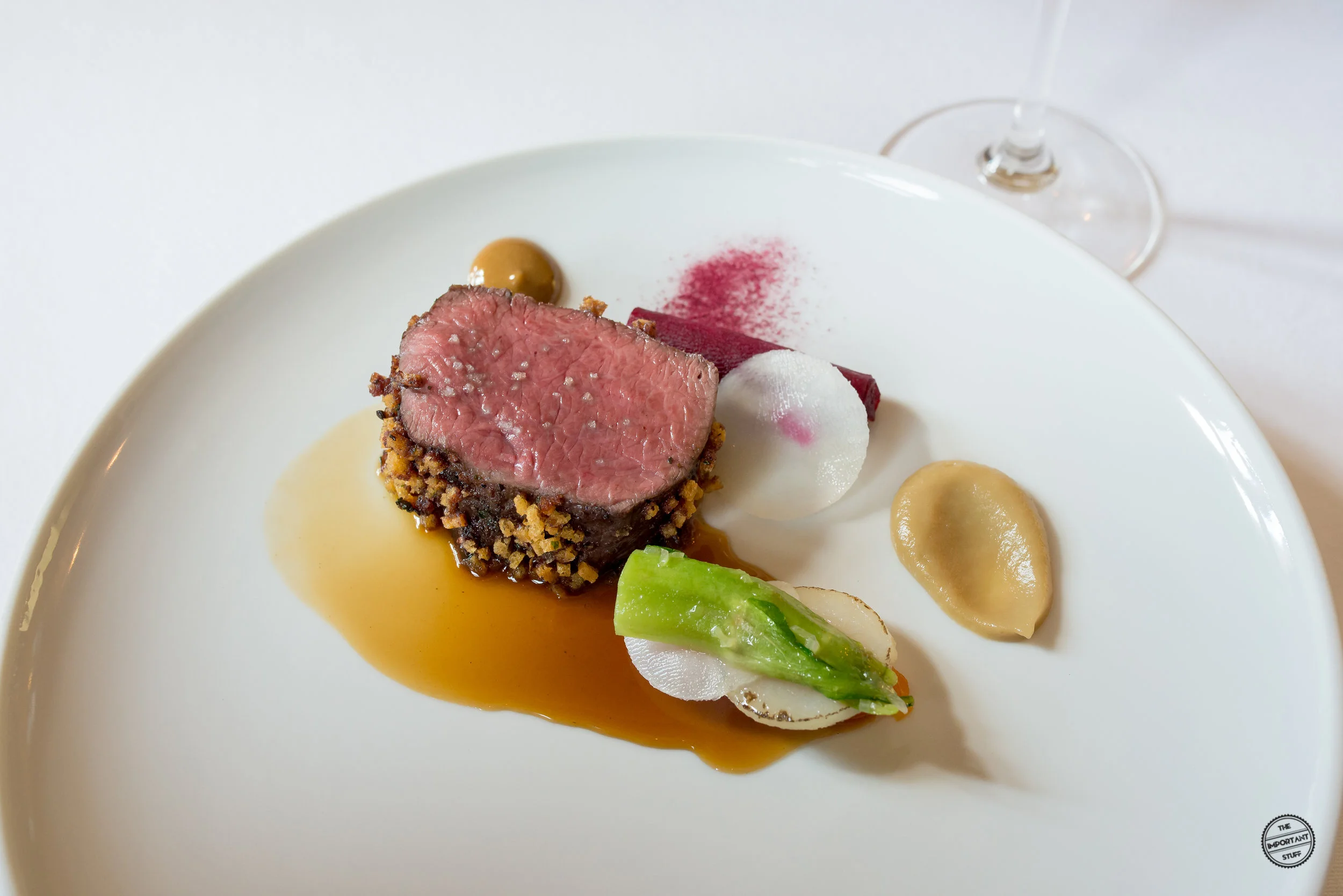 Foie Gras, Trüffel und Rote Bete fällt ein bisschen aus dem Rahmen, da es diese luftige Leichtigkeit vermissen lässt, die die bisherigen Gerichte ausgezeichnet hat. Mit dieser Kombination kann man zwar grundsätzlich wenig falsch machen, doch obwohl hier sowohl Ingredienzen als auch Handwerk überzeugen, ist das nur bedingt aufregend und auch nicht wirklich sommerlich.
