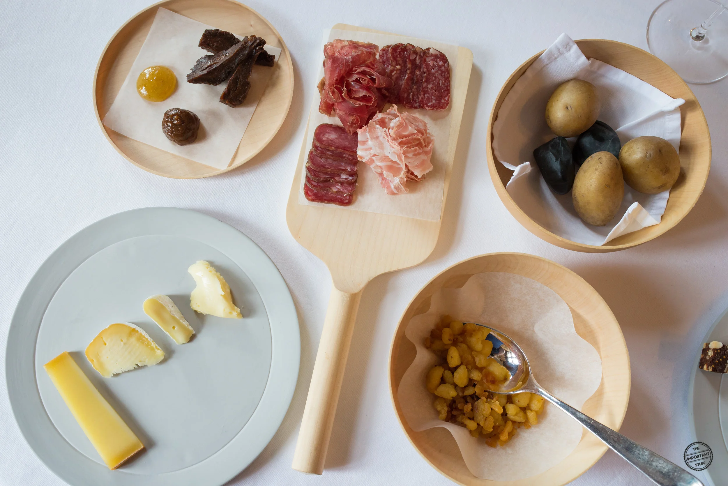Auf diesen Moment warte ich bei jedem Besuch in Fürstenau sehnsüchtig: der Käsewagen kommt. Er ist zwar heute nicht voll funktionsfähig und entfaltet dadurch nicht seine ganze mechanische Imposanz, doch das tut dem Käse, der darauf liegt, freilich keinen Abbruch. Wie immer sind die edlen Erzeugnisse in Bestform, perfekt gereift und temperiert. Dazu gibt’s quasi ein Best-Of-Bündlerland bestehend aus Maluns, Bergkartoffeln, Trockenfleisch, Senf und Dörrbirne. Gewisse Restaurants lohnen die Anreise dieser Tage alleine schon wegen des Käsewagens. Das Schauenstein gehört definitiv dazu.