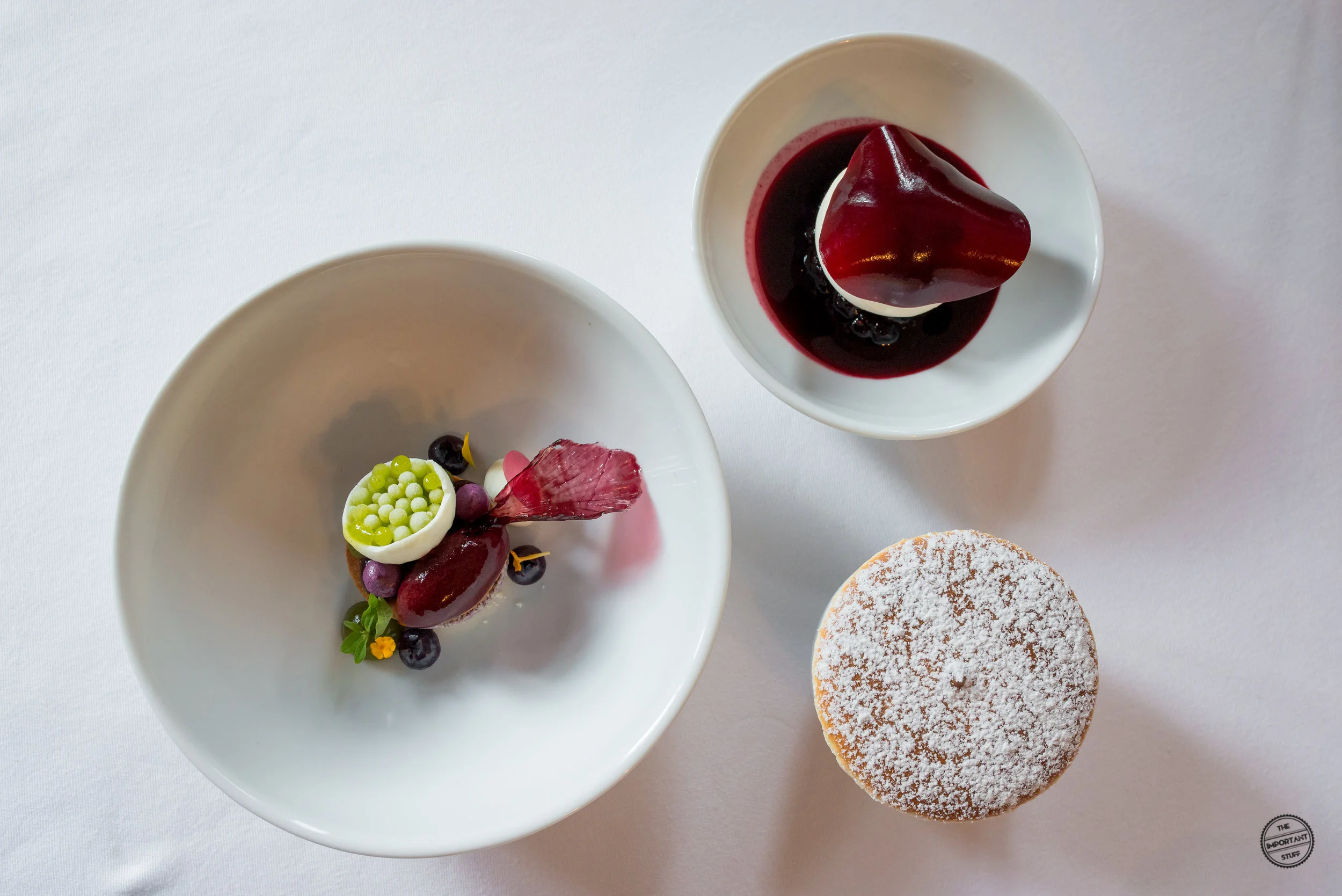 Ganz herzerwärmend mollig ist der Auftakt in die süsse Schlosswelt. Gebrannte Creme d Tatta und Apfelbeignets sind mittlerweile zu Vertrauten geworden, mit denen Caminada demonstriert, dass auch scheinbar simple Hausmannskost auf Dreisterneniveau gebracht werden kann. Das kann man einfach ohne gross nachzudenken wegfuttern. Oder sich, wenn man denn möchte, gleichzeitig am perfekten Handwerk und der tollen Feinabstimmung und Harmonie erfreuen. Grossartig. Jedes Mal aufs Neue.