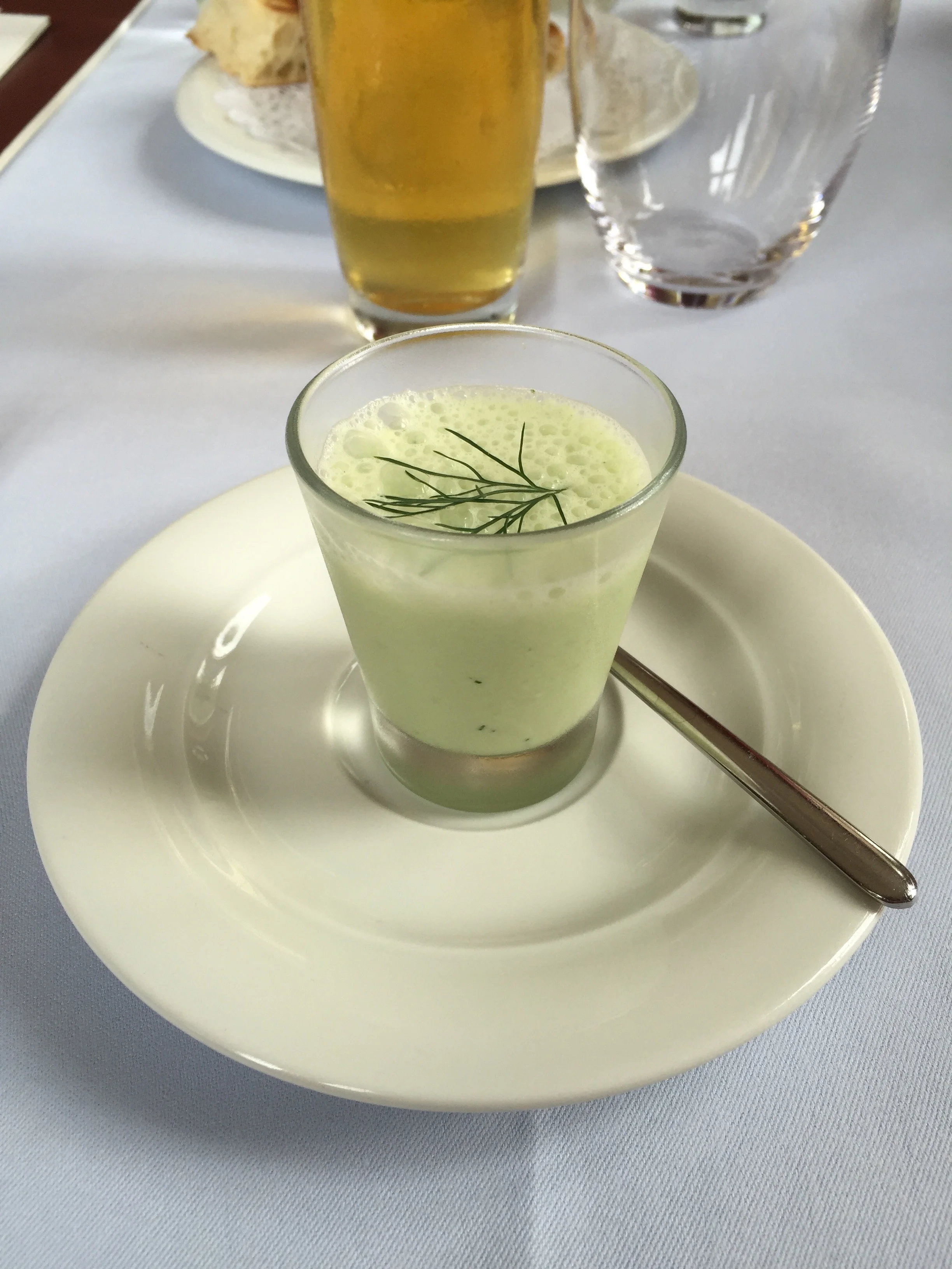 Auf meinem Weg in die Allgäuer Alpen möchte ich einen Zwischenhalt einlegen. Dieser soll natürlich mit gutem Essen versüsst werden. Da der Guide Michelin sich vor einigen Jahren aus wirtschaftlichen Gründen aus Österreich verabschiedet hat (abgesehen von den im "Main Cities of Europe" Guide vertretenen Städten Wien und Salzburg), stütze ich mich auf die hier gängigen Führer Gault Millau und Falstaff, um ein anständiges Restaurant zu finden. Unweit von meinem Reiseziel werde ich fündig. Das Schulhus in Krumbach wird vom Gault Millau mit 16 Punkten (von 20 möglichen Punkten) und von Falstaff mit 91 Punkten (von 100 möglichen Punkten) bewertet. Das wäre übersetzt in Michelin-Sprache irgendwo zwischen Bib Gourmand und 1 Stern. Die Texte auf der Website des Restaurants und die Reviews der jeweiligen Guides stimmen mich positiv. Gemüse aus dem eigenen Garten sowie Schwein, Huhn und Lamm aus eigener Zucht. Saisonal, Regional, klingt vielversprechend. Das Restaurant ist an diesem Mittag mitten in den Sommerferien immerhin mit ein paar Gästen besetzt. Die Karte ist angenehm übersichtlich gestaltet. Nach kurzer Bedenkzeit entscheid ich mich für das Menu in 4 Gängen. Kurz nachdem meine Bestellung aufgenommen wurde, gehts auch schon los mit dem einzigen Amuse. Die Gurkensuppe ist klassisch erfrischend. Dezent gewürzt mit etwas Dill und Knoblauch. Es finden sich auch noch einige sehr feine Gurkenstückchen in der Suppe. Leider keine geschnitten Brunoise oder ähnliches, sondern Stücke, welche beim passieren wohl durchgeschlüpft sind. Das kann man gut und authentisch finden oder ein bisschen schluderig. Ich bin hin und her gerissen, tendiere aber zum schluderig. Die Weinkarte bietet einige gut gereifte österreichische Tropfen im Offenausschank. Eher ungewöhnlich, aber meine Neugier ist geweckt. Ich starte mit einem 09er Weissburgunder aus dem Weinviertel von Michael Martin, der mich nur bedingt überzeugt. Seis drum. Es folgt bereits der erste Gang des Menus. Bodenseefelchen, gegrillte Wassermelone, Couscous besticht durch die tolle Fischqualität. Sehr frisch, toller Eigengeschmack, perfekt gegart. Die gegrillte Wassermelone schmeckt "erdig". Ein bisschen Frische hätte ihr besser zu Gesicht gestanden. Das Couscous ist eigentlich nicht der Rede wert und etwas zu mächtig portioniert. Dasselbe gilt für Topfengnocchi, Sommergemüse, Parmesan. Die Topfengnocchi gefallen zwar zuerst mal durch den leicht säuerlichen Touch des Quarks, sind dann aber nach dem dritten, vierten Bissen doch nicht ganz so luftig, wie ich mir sie erhofft habe. Schade. Das Sommergemüse besteht aus getrockneten Tomaten und Zucchini. Von einem Restaurant, dass mit saisonalem Gemüse aus dem eigenen Garten wirbt, erwarte ich mitten im Juli eigentlich ein bisschen mehr als (zweifellos aromatische) halbgetrocknete Tomaten und relativ lasche Zucchini. Der Parmesan ist gut gereift und tröstet ein wenig darüber hinweg, dass dieser Teller eigentlich nach einer Sauce schreit. Ich bin, wohlgemerkt, kein Saucenfanatiker. Eher im Gegenteil. Aber hier sind die Produkte für mich einfach nicht gut genug, um für sich zu bestehen. Plus ist das Ganze ein wenig trocken. Nun folgt als Hauptgang Kalbsschnitzel mit Schwammerl. Die Optik weckt bei mir keine Hoffnung auf Grossartiges. Es schmeckt dann aber immerhin besser als es aussieht. Das Fleisch ist annehmbar zart, die Sauce jedoch etwas gar dünn (geschmacklich ist sie in Ordnung) und die wohl ersten Eierschwammerl der Saison sind eher fad und wässerig. Kurzum, ich habe mir mejr erhofft. Zum Abschluss gibts noch gebackene Marillen mit Schokolade. Die Marillen haben einen wunderbaren Geschmack. Dass sie erhitzt sind und unter einem Teig mit Schokolade liegen, macht für mich angesichts der tollen Qualität der Frucht irgendwie keinen Sinn. Das à part gereichte Rosmarinsorbet ist ausgezeichnet und bietet einen notwendigen Gegenpunkt zum schweren Marillen-Auflauf. Zusätzlich gibt es noch ein Stückchen Marillen-Cake, der mir etwas zu süss ist.